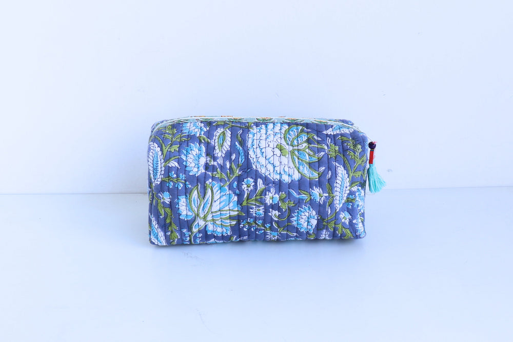 Quilted, block-printed, and built for real life. Explore handcrafted cotton bags for every occasion — from daily makeup pouches and laptop sleeves to weekend getaway bags and travel organizers. Each piece is made by artisans in Jaipur using traditional block printing.