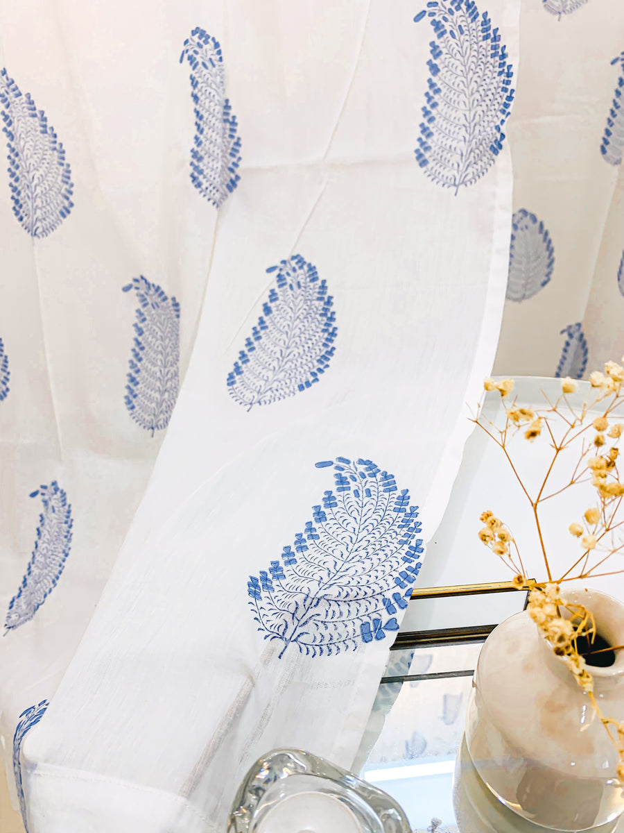 Our voile sheer curtains are light and breezy. The block print fabric features a running trellis with a floral print in yellow, green and red. The soft cotton voile fabric allows light to filter through. The base of the fabric is off white. Inspired by the traditional sari/ saree