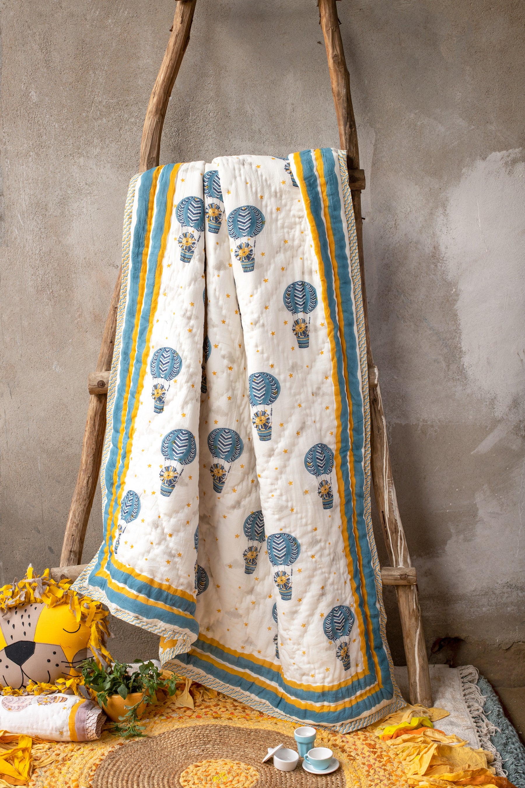 • Hand block printed lion design — playful and royal
