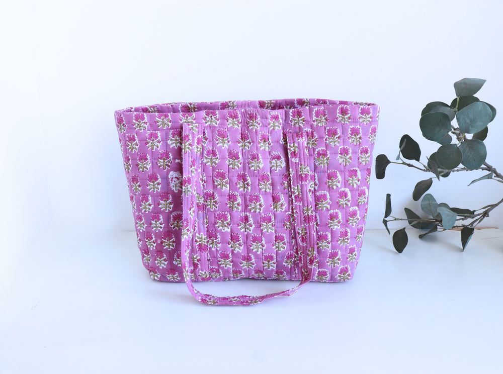 The fashion-forward yet eco-friendly Quilted Tote Bag from Kari by Kriti merges style with a commitment to the environment. The tote is crafted using environmentally-friendly materials like block print fabric and showcases detailed quilting, combining fashion with practicality. The roomy inside and stylish appearance of our items demonstrates our dedication to producing ethically made fashion with a focus on environmental sustainability