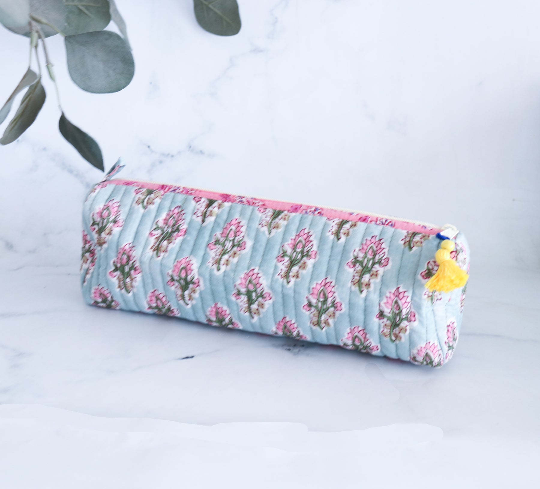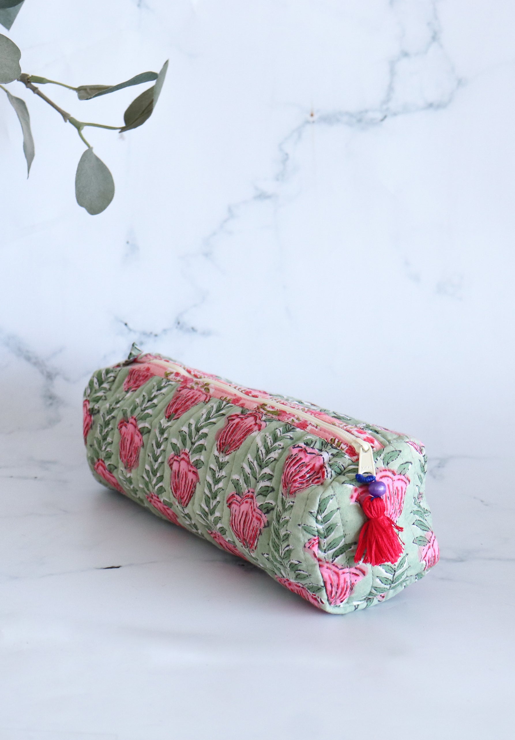 Our block print quilted round pencil pouches are the perfect combination of sustainable craftsmanship and everyday utility — now available in bulk sets for gifting and events.