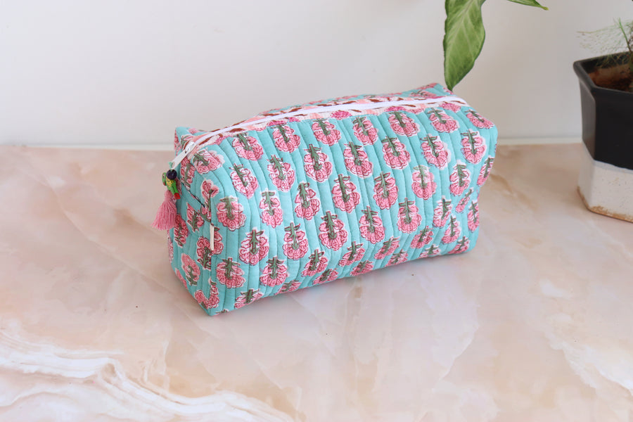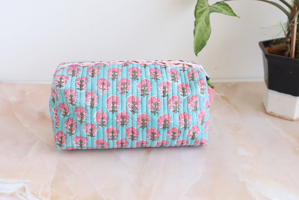 Block print fabric cosmetic pouches make for fun, girlie gifts! Pick these as Bridesmaid gifts, for travel essentials, makeup storage, for storing delicates or for hoarding stationery if you like. These spacious bright bohemian bags will add a ray of sunshine to your day!