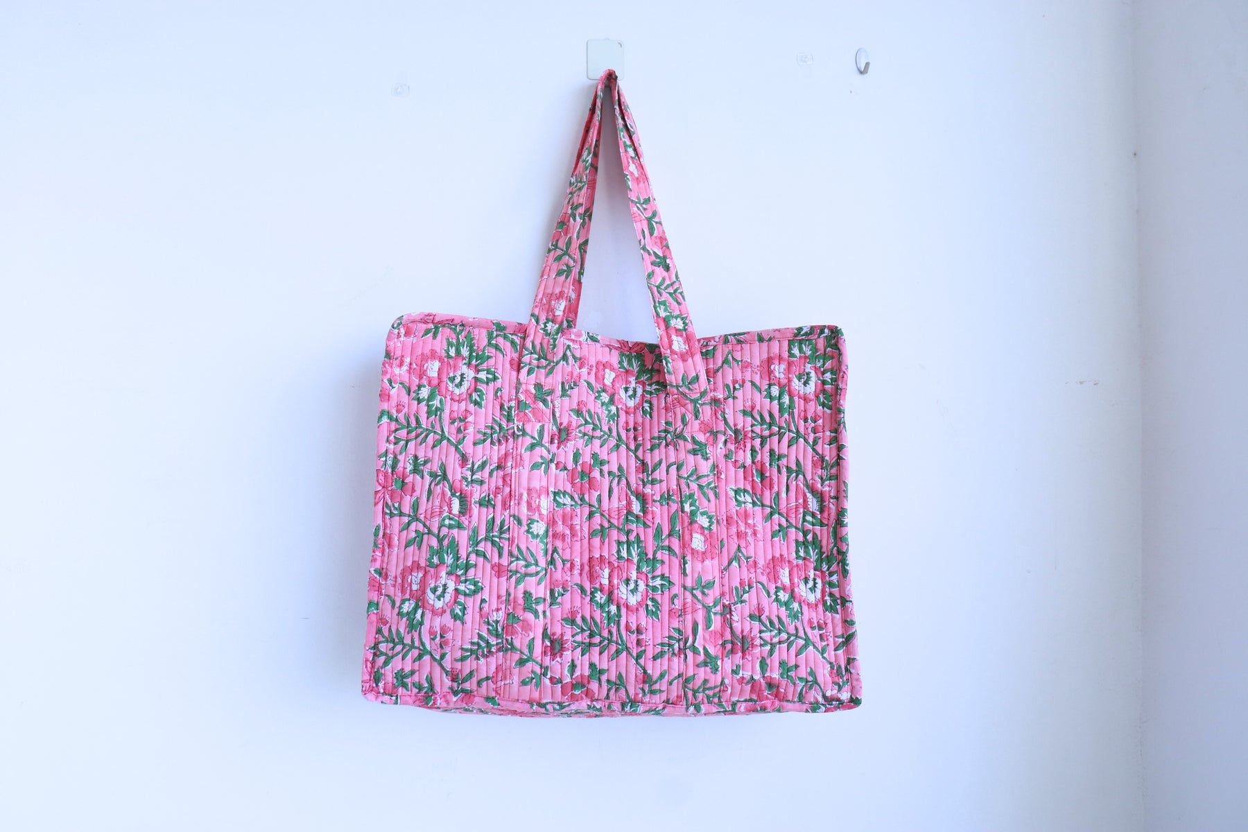 XL Quilted Tote Bag - Pink Floral Block Print