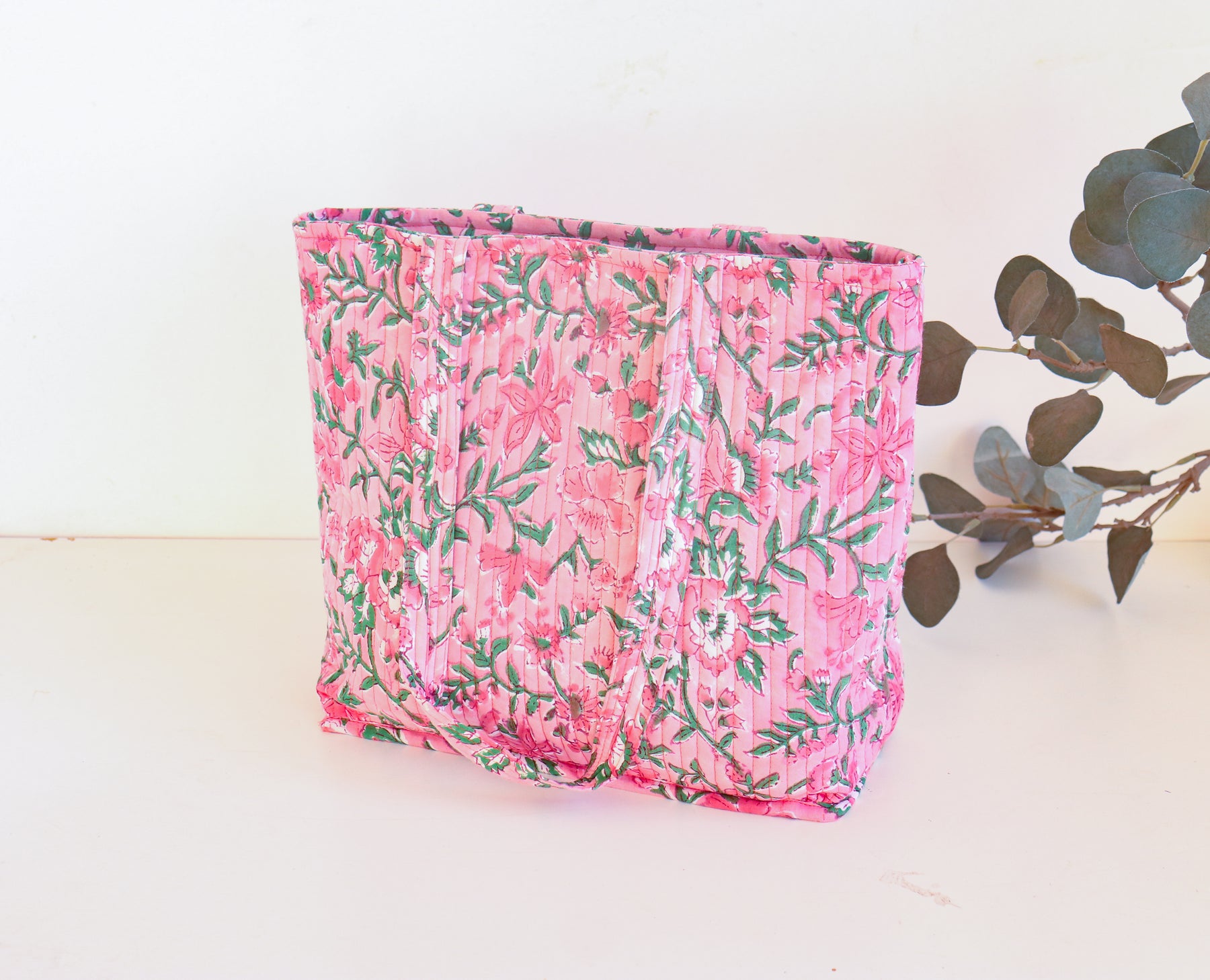 Block print tote bag - Boho quilted women's bags - Women's handbag - Pink Floral