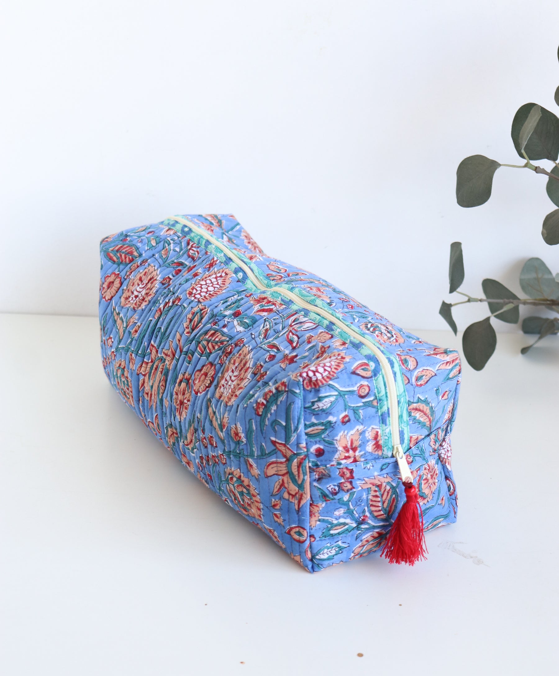 Keep your hair tools, including your Dyson Airwrap, neatly organized and stylishly stored with our beautiful new organizer kit. Handcrafted from exquisite hand block printed fabric and softly quilted, this organizer features a charming printed inner lining and a playful tassel detail. With 6 dedicated pockets, it's perfect for keeping all your hair essentials in place and tangle-free.