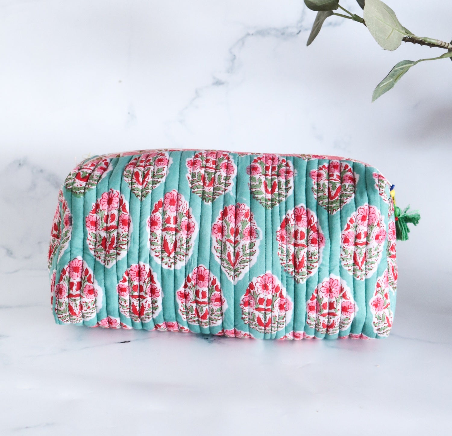 Block print fabric cosmetic pouches or toiletry bags make for fun, girlie gifts! Pick these as Bridesmaid gifts, for travel essentials, makeup storage, for storing delicates or for hoarding stationery if you like. These fairly large and spacious bright bohemian bags will add a ray of sunshine to your day!
